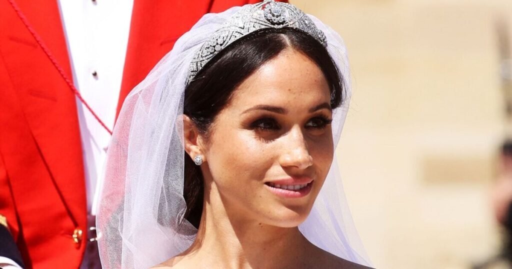 Meghan’s stunning tiara, the most expensive item she wore on her wedding day, was lent to her by the late Queen Elizabeth. It used to belong to Queen Mary and was also worn by the late Elizabeth.