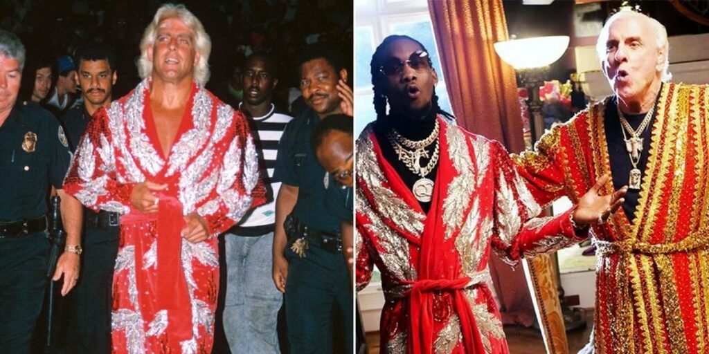 Flair’s career spans multiple generations of entertainment. He started wrestling in the 1970s and became the gold standard for what a champion should look like. The robes, the strut, the ‘WOOOOO’ – all of it became part of American pop culture. When hip-hop artists started referencing wrestling in their lyrics, Flair was always at the top of the list.